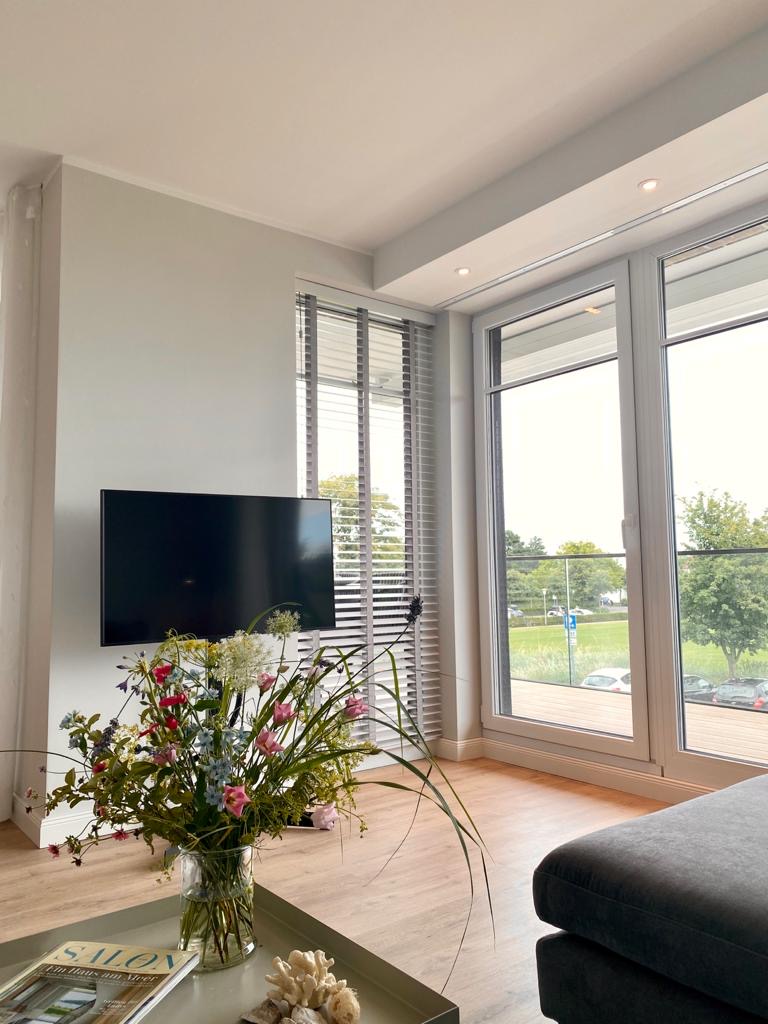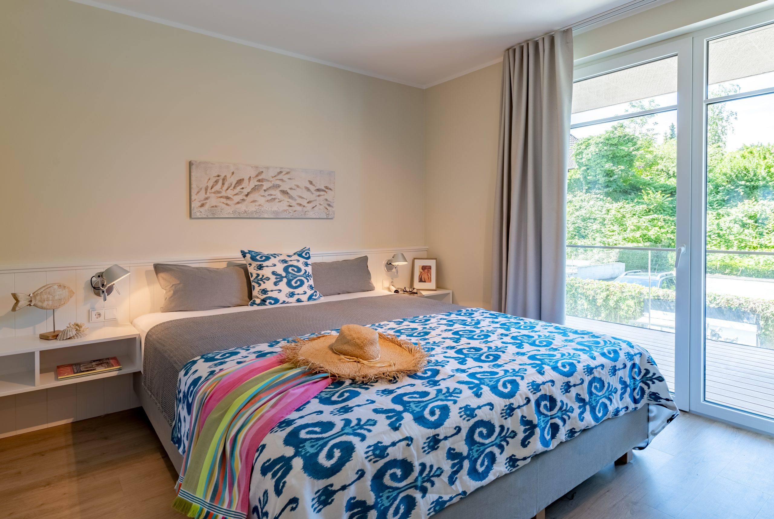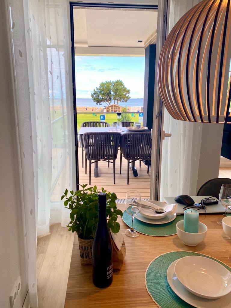 Auf dem charmant angelegten Balkon mit Südausrichtung und direktem Meerblick lässt es sich wunderbar mit einem leckeren Kaffee in den Tag starten. Lassen Sie sich von der unvergleichlichen Panoramaaussicht über die Ostsee verzaubern und schnuppern die frische Seeluft.